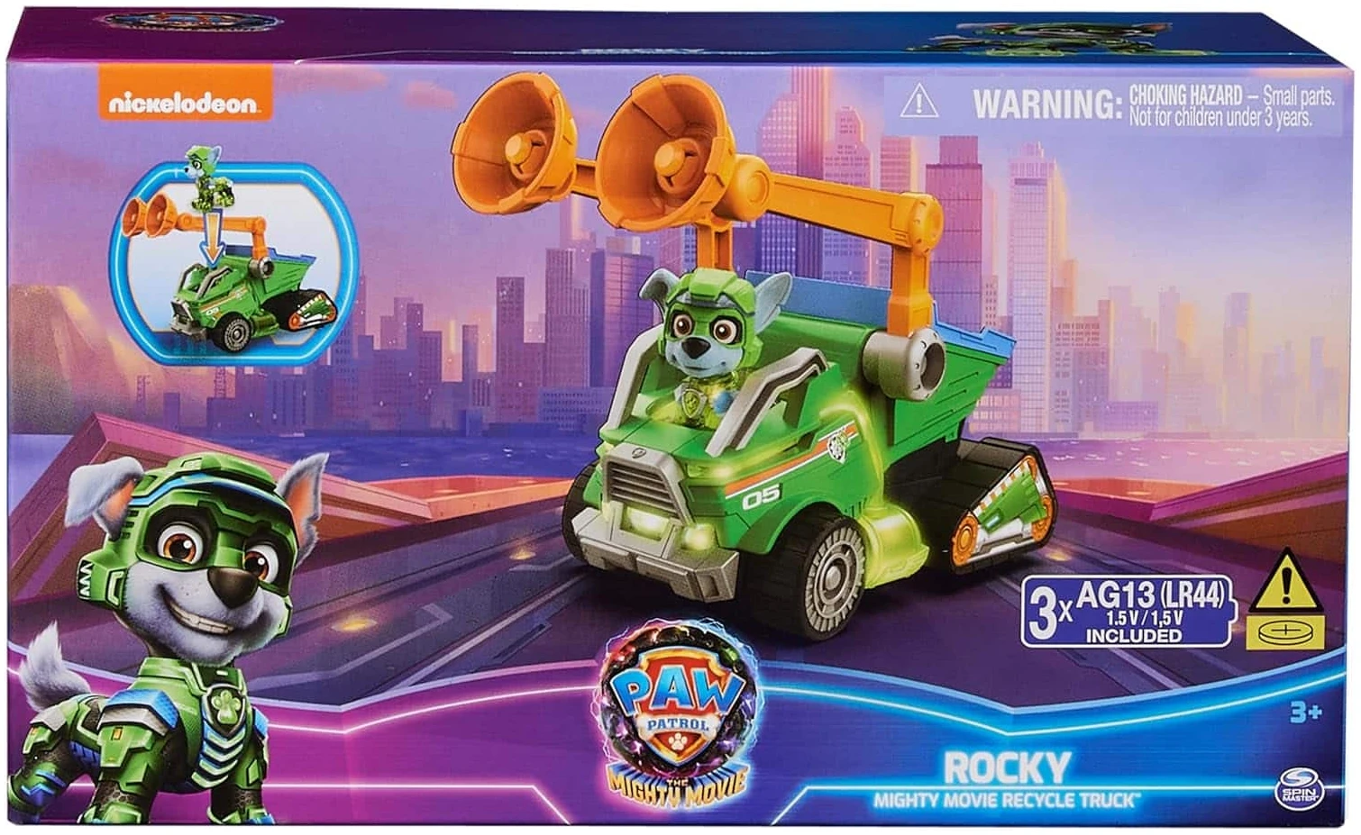 Team up with Rocky for exciting rescue adventures, right out of the big screen, in his PAW Patrol: The Mighty Movie rescue vehicle!